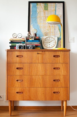 A photo like this makes me wonder if I should be painting Bryn's vintage dressers a color other than white? But I love the way the white looks in the photo above, so I'm not won over yet. Found here.